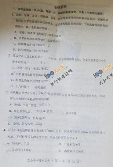 2012年安全工程师《安全生产技术》考试试题及答案交流