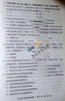2012年安全工程师《安全生产管理知识》考试试题及答案交流1