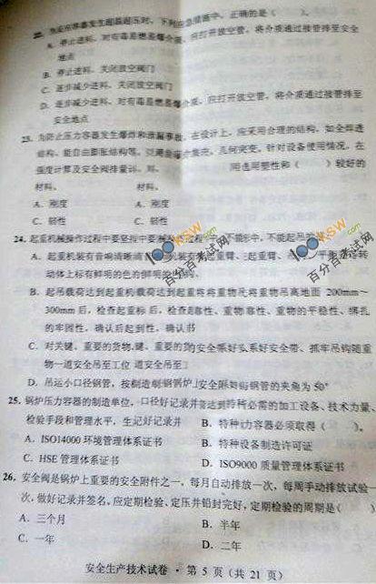 2012年安全工程师《安全生产技术》考试试题及答案交流3