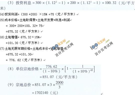1)计算土地价格:利用成本逼近法计算土地价格