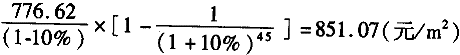 | 正确答案: 1.方法选择 根据所给资料,应采用成本法评估该房地产现值。 2.计算步骤 (1)计算土地价格: 利用成本逼近法计算土地价格 1)土地取得费=300(元/m2) 2)土地开发费=200(元/m2) 3)投资利息=300×(1.12 -1)+200×(1.12 -1)=100.32(元/m2)4)投资利润=(300+200)×15%=75(元/m2) 5)成本价格=土地取得费+土地开发费+利息+利润 =300+200+100.32+75+675.32(元/m2) 6)土地增值=675.32×15%=101.30(元/m2) 7)土地无限年期价格=土地成本价+土地增值 =675.32+101.30=776.62(元/m2) 8)单位宗地价格= ![]() 9)宗地总价: ![]() (2)计算建筑物价格 1)建筑物重置价格=1500×2500=3750000(元) 2)建筑物折旧额= ![]() 3)建筑物现值=3750000-234375=3515625(元) (3)计算不动产现值 1)不动产现值=1702140+3515625=5217765(元)≈522(万元) 2)单位不动产现值=5217765/2500≈2087(元/m ) |