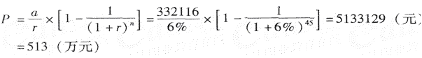 | 正确答案: 1 1.解题思路与方法选用 估价对象为有收益的房地产,且有客观收益和出租费用等资料,适宜选用收益还原法评估。 2.解题步骤 (1)计算房地年总收益 50×950×12=570000(元) (2)计算年总费用 ①年管理费=50×950×12×5%=28500(元) ②年维修费=1600×950×2%=30400(元) ③年保险费=1600×950×0.2%=3040(元) ④年税金=35×950=33250(元) ⑤年折旧费:1600×950/(50-01)=31020.41(元) ⑥年总费用:①+②+③+④+⑤ =28500+30400+3040+33250+31020 =126210(元) (3)计算建筑物年纯收益 建筑物年纯收益=建筑物现值×建筑物还原率 =(建筑物重置价-年折旧费×已使用年限)×建筑物还原率 =1600×950-31020×4)×8% =111674(元) (4)计算土地年纯收益 土地纯收益=房地总收益-房地总费用-建筑物纯收益 =570000-126210-111674 =332116(元) (5)计算2006年6月的土地价格 土地总价格: ![]() P=A/R×[1-1/(1+r)n]=332116/6%×[1-1/(1+6%)45]=513(万元) 土地单位价格:5133129÷800=6416(元/平方米) (6)建筑物现值 建筑物现值=建筑物重置价-年折旧费×已使用年限 =1600×950-31020×4 =1395920(元) (7)土地及建筑物一体总价格: 土地及建筑物一体总价格=土地总价+建筑物现值×建筑物面积 =5133129+1395920 =6529049(元)=652(万元) 土地及建筑物一体单价:6529049÷800=8161(元/平方米) |