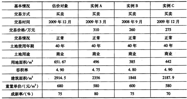| 4.下面是一个完整的土地估价技术报告(标注“略”的为正常内容),请阅读后指出错误并说明原因(每指出一处错误并简述原因的得1.25分,只指出错误不简述原因不得分,总分最高为30分)。 土地估价技术报告 第一部分总述 一、估价项目名称 ××公司位于××区××路××号用地地价评估。 二、委托估价方 (略) 三、受托估价方 (略) 四、估价对象 估价对象为××公司位于××市××区××路××号营业楼用地,面积595.58m 。五、估价目的 本次评估是为委托方提供该宗地的土地使用权价格,为委托方因经营需要转让该宗土地提供价格依据。 六、估价依据 (1)《中华人民共和国土地管理法》。 (2)《中华人民共和国城市房地产管理法》。 (3)《国有企业改革中划拨土地使用权管理暂行规定》。 (4)《城镇土地估价规程》。 (5)《土地估价报告规范格式》。 (6)××省关于土地管理的法律、法规。 (7)评估委托书。 (8)估价对象《房屋所有权证》。 (9)受托估价方实地勘察调查所获取的有关资料。 七、价格定义 估价对象作为商业用地,在容积率为4.9,开发程度为场内“五通一平”、场外“六通一平”状态下,于估价期日的40年期的土地价格。 八、估价期日 二00九年十二月三十一日。 九、估价日期 二00九年十二月三十日至二0一0年一月十日。 十、估价结果 估价机构在充分调查和分析估价对象实际情况的基础上,依据科学的估价程序,确定估价结果为以下内容。 委估土地面积:595.58m 。单位面积地价:4485.25元/m 。总地价:2671325元。 大写:(人民币)贰佰陆拾柒万壹仟叁佰贰拾伍元整。 十一、需要特殊说明的事项 (1)本报告估价结果为估价期日及设定容积率和土地开发程度的商业用地的土地价格,若条件发生改变,则本结果应做相应调整。 (2)本报告结果只为此次估价目的服务,如用做其他目的,其价格应做相应调整。 十二、土地估价师签名 (略) 十三、土地估价机构 (略) 二0一0年一月十日 第二部分估价对象描述及地价影响因素分析 一、估价对象描述 1.土地位置状况 估价对象位于××市××区××路××号,土地证号为×国用(××)字第××号,土地面积为595.58m ,东至××路、南至××、西至××××、北至××××,宗地号为××××。2.土地权利状况 估价对象是××公司以划拨方式取得的国有土地使用权,土地所有权属国家。××公司拟以出让方式取得该宗地40年期商业用途的土地使用权后,转让出售该房地产。获得出让土地使用权后.其转让、出租、抵押等经济活动的合法权益受法律保护。 3.建筑物和地上附着物状况 估价对象上有一幢建于1991年的钢混结构建筑物,现用于商业经营和办公,建筑面积2914.5m ,有效使用率80%。二、地价影响因素分析 (一)区域因素(略) (二)个别因素(略) 第三部分土地估价 一、估价原则 (1)最有效使用原则(略)。 (2)贡献原则(略)。 (3)变动原则(略)。 (4)合法原则(略)。 二、估价方法与估价过程 (一)估价方法的选择 估价人员通过现场勘察,在认真分析调查收集资料的基础上,遵循估价原则,确定采用收益还原法、市场比较法评估待估宗地地价。 (二)估价过程 1.收益还原法 (1)计算估价对象总楼价。 计算公式为: ![]() 式中P-总楼价; a-房地年纯收益。其参数通过房地的正常租金水平测得; r-综合还原率; n-房地尚可使用年限。 估价对象地上建筑物的耐用年限为60年,经现场查勘,该房屋尚可使用年限为45年。建筑物重置单价为700元/m ,残值率为0。根据估价人员现场观察和对照《房屋完损等级评定标准》,确定本次估价对象地上建筑物于估价期日为基本完好房,成新率为75%。 (2)确定客观租金。 应用市场比较法确定客观租金。 ①选择可比实例。 根据收集的市场资料进行筛选,选取以下3个房地出租实例,详见《房地出租比较实例基本情况一览表》。(略) ②影响租金因素修正(略)。 ③客观租金的计算及确定。 比准价格A=243.60元/m ![]() 比准价格B=233.40元/m ![]() 比准价格C=249.09元/m ![]() 取比准价格A、比准价格B、比准价格C的算术平均数作为估价对象的客观租金,即 客观租金=(243.60+233.40+249.09)/3=242.03(元/m )(3)计算房地总收益。 年总收益=2914.50×0.8×242.03=564317.15(元) (4)计算年总费用。 ①管理费。 根据调查了解,当地房屋出租的经营管理费为房屋租金的3%。即: 房屋出租经营管理费=房地年租金×3%=564317.15×3%=16929.51(元) ②维修费。 根据××市建设和房管部门提供的资料,市区房屋出租年经营维修费为房屋重置价格的2%,即: 房屋出租经营维修费=房屋重置价×2%=2914.50×700×2%=40803(元) ③保险费。 根据调查,市区房屋保险费率为房屋现值的2%0,即: 房屋年保险费=房屋现值×2‰=2914.50×700×75%×2‰=3060.23(元) ④房屋年折旧额。 ![]() ⑤租金损失。 根据调查,房屋出租租金损失-般为半月租金.即: 租金损失=(564317.15/12)/2=23513.21(元) 年总费用=①+②+③+④+⑤=118308.45(元) (5)房地年纯收益。 房地年纯收益=房地年出租总收益-房地年出租总费用 =564317.15-118308.45=446008.70(元) (6)确定综合还原率。 采用收益排序插入法确定综合还原率为10%。 (7)计算总楼价。 ![]() (8)房屋现值。 房屋现值=房屋重置价×成新率=2914.50×700×75%=1530112.5(元) (9)总地价。 总地价=总楼价-房屋现值=4398898.12-1530112.5=2868785.62(元) 2.市场比较法 (1)选择房地出售实例。 估价人员对收集的多宗交易实例进行比较分析后,选择了三宗交易实例作为比较实例,基本