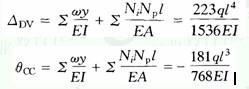 对图3-5f所示的体系,只要将上面ΔDV及θcc中最后一项轴力杆的柔度系数改为弹性支撑的柔度系数(其他各项均相同),就可得到该体系的ΔDV及θcc。