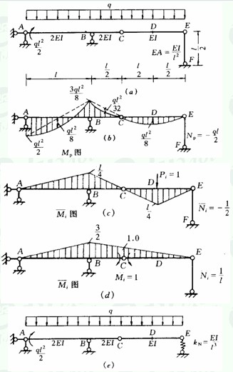 (2)应用组合结构的简化位移计算公式(3—7),并用图形相乘法,得