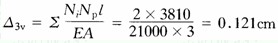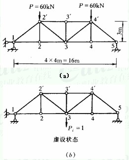 [解] 虚设状态如图3—1b所示,求出实际状态(图3—1a)和虚设状态中各杆的轴力Np和Ni后,即可由式(3-5)求得Δ3V 为