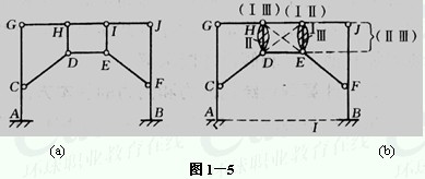 [例1-2] 分析图1-5(a)所示体系的几何组成。