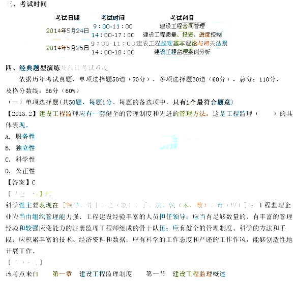 2014年全国监理工程师各科目考试大纲
