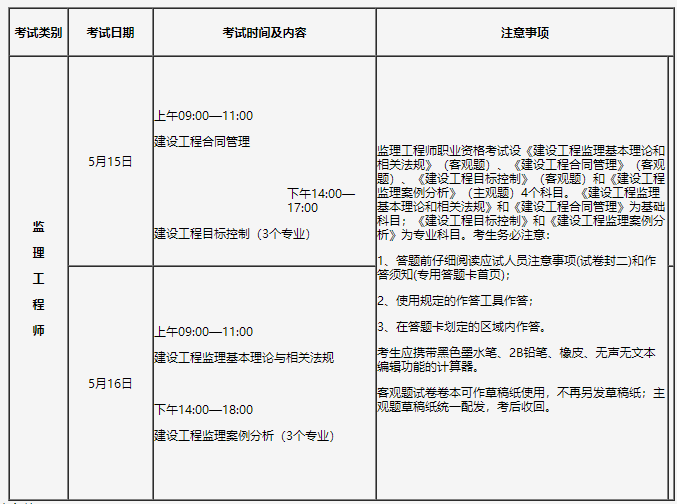 根据《人力资源社会保障部办公厅关于2021年度专业技术人员职业资格考试计划及有关事项的通知》(人社厅发〔2021〕4号)和《人力资源社会保障部人事考试中心关于2021年度监理工程师职业资格考试考务工作的通知》(人考中心函〔2021〕5号)文件精神,为做好我省2021年度监理工程师职业资格考试考务工作,现将有关事项通知如下: