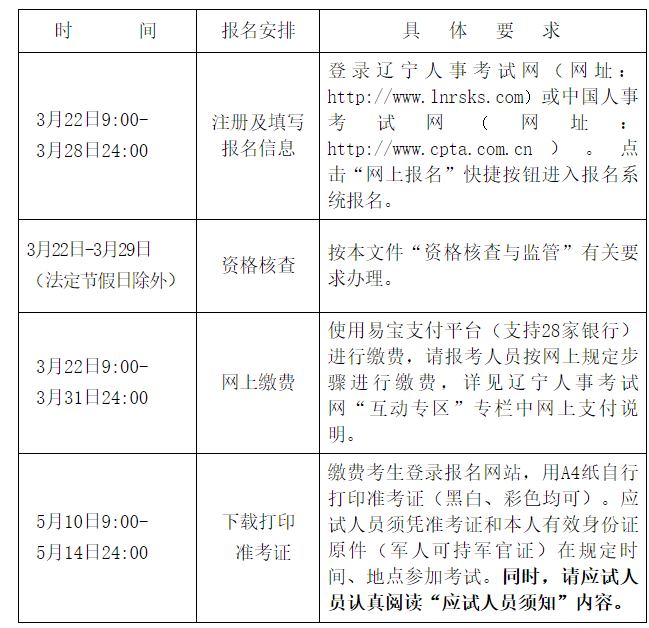3月22日-3月28日 登录辽宁人事考试网或中国人事考试网注册及填写报名信息