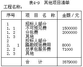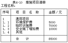 3.其他项目清单和措施项目清单见表4-9和表4-10。