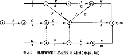 1.某市政工程,项目的合同工期为38周。经总监理工程师批准的施工总进度计划如图5-5所示,各工作可以缩短的时间及其增加的赶工费见表5-19,其中H、L分别为道路的路基、路面工程。![]() ![]() 问题: 1.开工1周后,建设单位要求将总工期缩短2周,故请监理单位帮助拟定一个合理赶工方案以便与施工单位洽商,请问如何调整计划才能既实现建设单位的要求又能使支付施工单位的赶工费用最少?说明步骤和理由。 2.建设单位依据调整后的方案与施工单位协商,并按此方案签订了补充协议,施工单位修改了施工总进度计划。在H、L工作施工前,建设单位通过设计单位将此400m的道路延长至600m。请问该道路延长后H、L工作的持续时间为多少周(设工程量按单位时间均值增加)?对修改后的施工总进度计划的工期是否有影响?为什么? 3.H工程施工的第一周,监理人员检查发现路基工程分层填土厚度超过规范规定,为保证工程质量,总监理工程师签发了工程暂停令,停止了该部位工程施工。总监理工程师的做法是否正确?总监理工程师在什么情况下可签发工程暂停令? 4.施工中由于建设单位提供的施工条件发生变化,导致I、J、K、N四项工作分别拖延1周,为确保工程按期完成,须支出赶工费。如果该项目投入使用后,每周净收益5.6万元,从建设单位角度出发,是让施工单位赶工合理还是延期完工合理?为什么? |