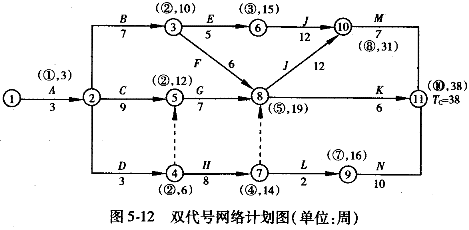 | 正确答案: 问题1 如图5.12所示,关键工作为A、C、G、J、M,应选择关键工作作为压缩对象;又因为压缩G、M增加的赶工费用分别为最低、次低,并且均可压缩一周,压缩之后仍为关键工作,因此应分别将分部工程G和M各压缩1周。 ![]() 工期优化的步骤: (1)确定网络计划的计算工期和关键线路。 (2)按要求工期计算应缩短的时间。 (3)选择应缩短持续时间的关键工作(从需增加的费用最少的关键工作开始)。 (4)将所选定的关键工作的持续时间压缩至最短,并重新确定计算工期和关键线路。 问题2 H工作从8周延长到12周(8×600/400),L工作从2周延长到3周(2×600/400)。工作的延长没有超过总时差,对修改后的施工总进度计划的工期不会产生影响。 问题3 总监理工程师的做法是正确的,即为了保证工程质量,总监理工程师可以进行停工处理。 总监理工程师在下列情况下可以签发工程暂停令: (1)建设单位要求暂停施工、且工程需要暂停施工。 (2)为了保证工程质量而需要进行停工处理。 (3)施工出现了安全隐患,总监理工程师认为有必要停工以消除隐患。 (4)发生了必须暂时停止施工的紧急事件。 (5)承包单位未经许可擅自施工,或拒绝项目监理单位管理。 问题4 让施工单位赶工合理。因为此时只需压缩工作J的持续时间,即可压缩工期。而压缩工作J的费率为2万元/周,小于项目投入使用后的净收益5.6万元/周。 |