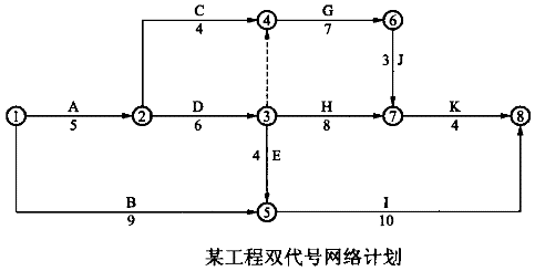 1.某工程双代号网络计划如图所示,其关键线路有( )条。![]() |