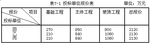 1.某工程项目业主邀请了三家施工单位参加投标竞争。各投标单位的报价如表7-1所示,施工进度计划安排如表7-2所示。若以工程开工日期为折现点,贷款月利率为1%,并假设各分部工程每月完成的工作量相等,并且能按月及时收到工程款。![]() ![]() 【问题】 1.就甲、乙两家投标单位而言,若不考虑资金时间价值,判断并简要分析业主应优先选择哪家投标单位。 2.就乙、丙两家投标单位而言,若考虑资金时间价值,判断并简要分析业主应优先选择哪家投标单位。(注:现值系数见表7-3) 3.评标委员会对甲、乙、丙三家投标单位的技术标评审结果如表7-4所列。评标办法规定:各投标单位报价比标底价每下降1%,扣1分,最多扣10分;报价比标底价每增加1%,扣2分,扣分不保底。报价与标底价差额在1%以内时可按比例平均扣减。评标时不考虑资金时间价值,设标底价为2125万元,根据得分最高者中标原则,试确定中标单位。 ![]() 注:计算结果保留小数点后两位。 ![]() |