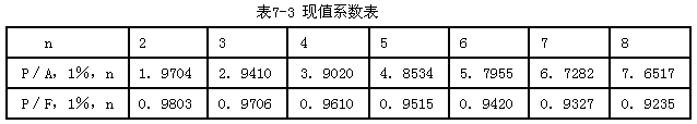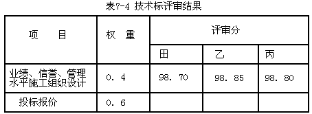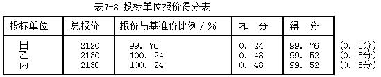 | 正确答案: 1.若不考虑资金时间价值,业主应优先选择甲投标单位。(0.5分) 因甲、乙投标单位在相同的施工进度计划安排下甲投标单位总报价低。(0.5分) 2.(1)乙投标单位工程款 基础工程每月工程款A1=210/3=70(万元)(0.5分) 主体工程每月工程款A2=840/5=168(万元)(0.5分) 装饰工程每月工程款A3=1080/4=270(万元)(0.5分) (2)乙投标单位工程款现值 PV乙=70(P/A,1%,3)+168(P/A,1%,5)(P/F,1%,3)+270(P/A,1%,4)(P/F,1%,8) =70×2.9410+168×4.8534×0.9706+270×3.9020×0.9235(2分) =1970.21(万元)(0.5分) 【注:如果(1)、(2)合并计算且正确的,合计给4.5分】 (3)丙投标单位工程款 基础工程每月工程款A1=210/2=105(万元)(0.5分) 主体工程每月工程款A2=840/6=140(万元)(0.5分) 装饰工程每月工程款A3=1080/6=180(万元)(0.5分) (4)丙投标单位工程款现值 PV丙=105(P/A,1%,2)+140(P/A,1%,4)(P/F,1%,2)+(140+180)(P/A,1%,2)(P/F,1%,6)+180(P/A,1%,4)(P/F,1%,8) =105×1.9704+140×3.9020×0.9803+320×1.9704×0.9420+180×3.9020×0.9235(2分) =1985.00(万元)(0.5分) 或PV丙=105(P/A,1%,2)+140(P/A,1%,6)(P/F,1%,2)+180(P/A,1%,6)(P/F,1%,6) =105×1.9704+140×5.7955×0.9803+180×5.7955×0.9420(2分) =1984.96(万元)(0.5分) 【注:如果(3)、(4)合并计算且正确的,合计给4.5分】 (5)业主应优先选择乙投标单位。(1分) 因乙投标单位工程款现值较低。(0.5分) 3.(1)计算各投标单位报价得分(表7-8)。 ![]() 或: 甲:2120-2125=-5(万元) 下降百分数5/2125=0.24%,扣分0.24,得分99.76。(0.5分) 乙:2130-2125=5(万元) 增加百分数5/2125-0.24%,扣分0.48,得分99.52。(0.5分) 丙:2130-2125=5(万元) 增加百分数5/2125=0.24%,扣分0.48,得分99.52。(0.5分) (2)计算各投标单位综合得分 甲:98.70×0.4+99.76×0.6(0.5分) =99.34(分)(0.5分) 乙:98.85×0.4+99.52×0.6(0.5分) =99.25(分)(0.5分) 丙:98.80×0.4+99.52×0.6(0.5分) =99.23(分)(0.5分) 【注:如果(1)、(2)合并计算且正确的,合计给6分】 (3)应选甲投标单位中标(1分) (注:将三方比较后得出该结论才可给分,否则不给分) |