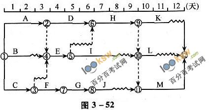 某分部工程双代号时标网络计划如图3—52所示。其中工作C和I的最迟完成时间分别为第( )天。