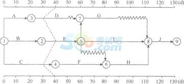 70.某工程项目双代号时标网络计划如图所示,在计划执行到第40天下班时刻检查时,其实际进度如图前锋线所示,则下列说法错误的是( )。