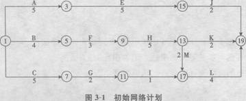 6、某工程项目合同工期为18个月。施工合同签订以后,施工单位编制了一份初始网络计划,如图3—1所示(时间单位:月)。由于该工程施工工艺的要求,计划中工作C、工作H和工作J需共用一台起重施工机械,为此需要对初始网络计划做调整。