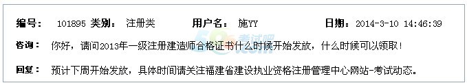 2013年福建一级建造师考试合格证书预计将于2014年3月17日后发放,具体信息可关注福建建设执业资格注册管理中心