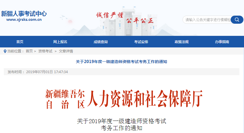 根据人力资源和社会保障部《关于2019年度一级建造师资格考试考务工作的通知》(人考中心函﹝2019﹞31号)精神,现将自治区2019年度一级建造师资格考试考务工作有关事宜通知如下: