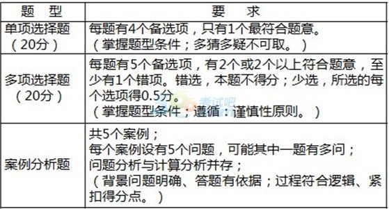 专业科目的题型分为单项选择题、多项选择题和综合(案例)分析题。
