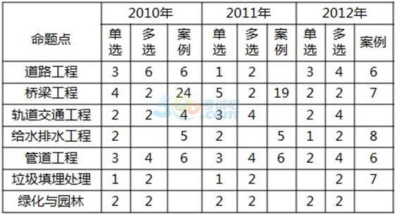 第一部分的道路、桥梁、轨道交通、给水排水、管道工程均可作为案例出题的考点;