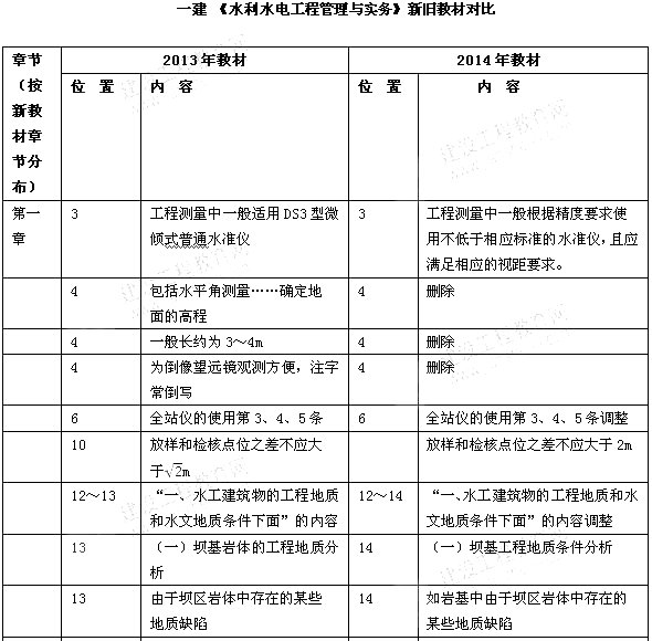 编者按:2014年一级建造师水利水电实务教材变化解析,专业、权威,希望对大家有所帮助!