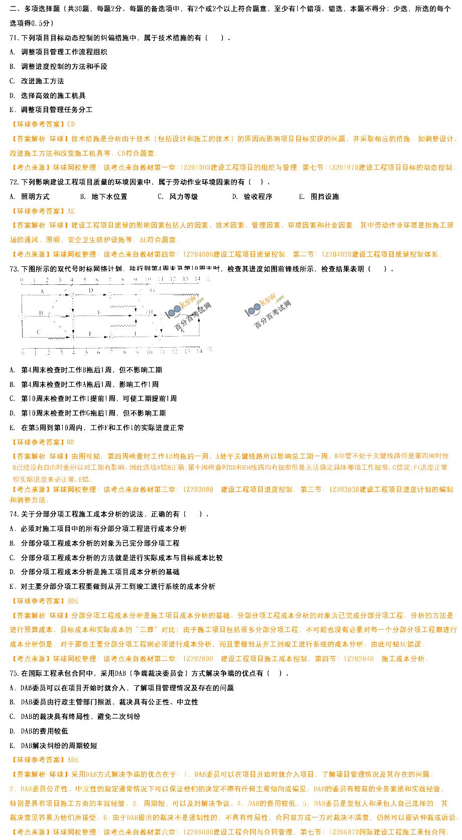 2014年一级建造师《项目管理》真题答案(文字版)2
