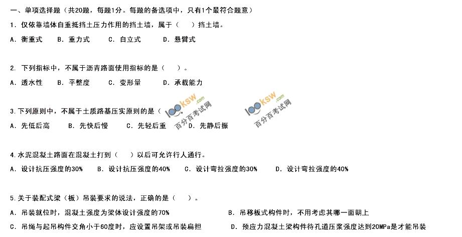 2016年一级建造师《市政工程》真题及答案(文字版)