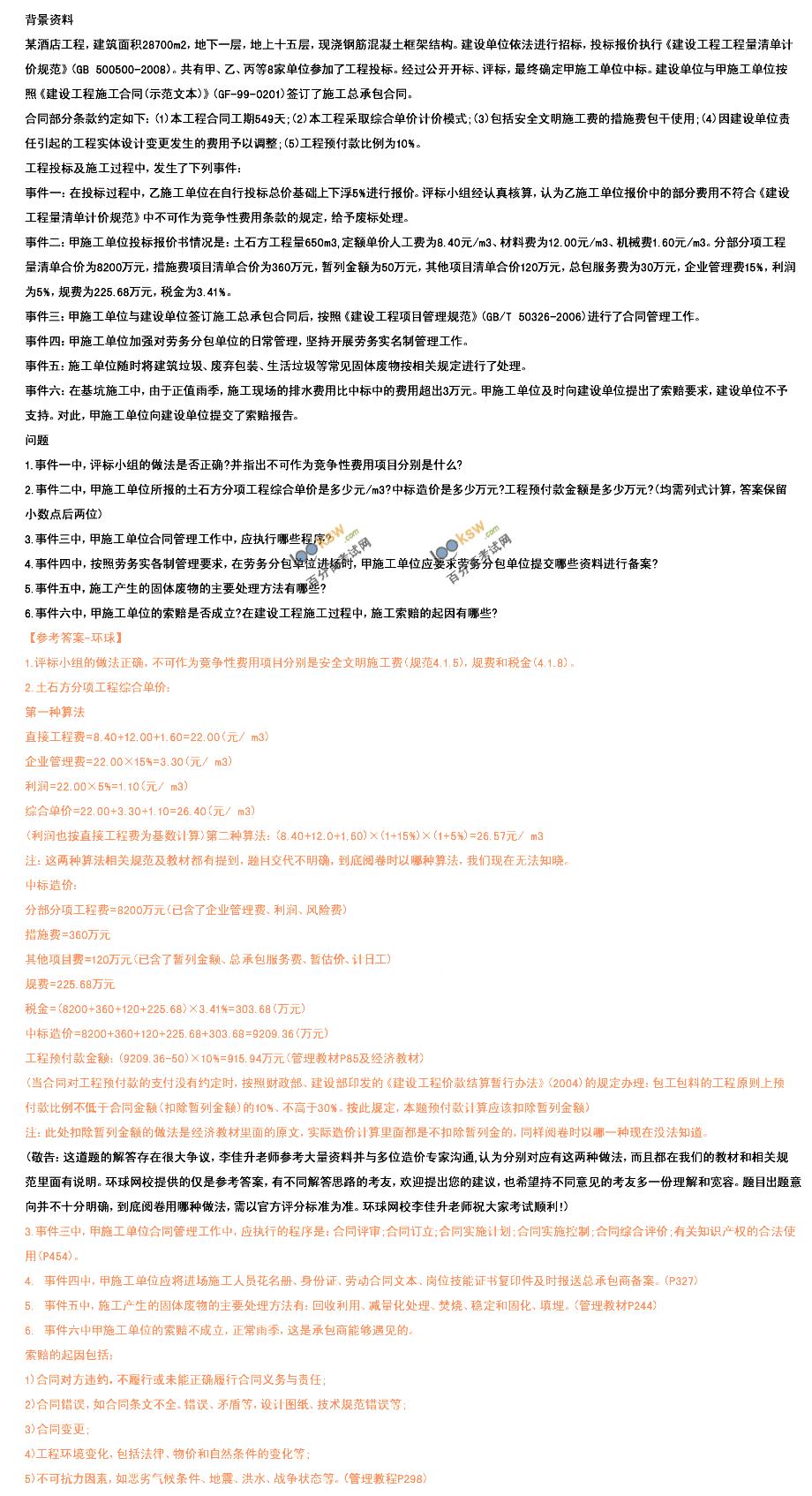 2016一级建造师《建筑工程》案例题答案(网友版)
