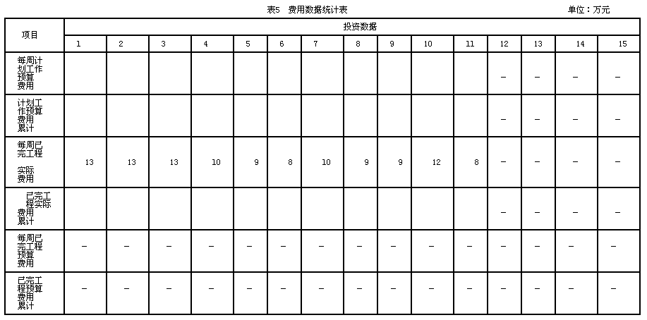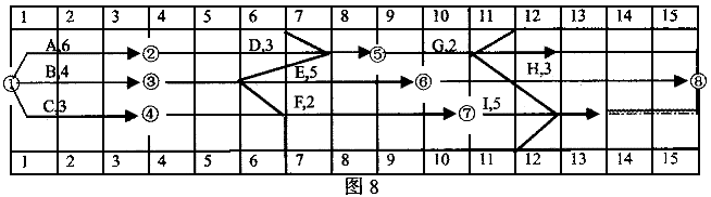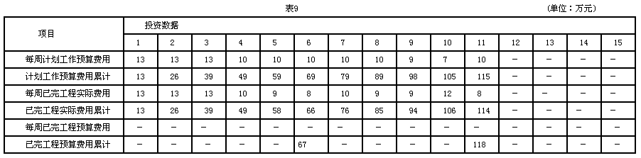 | 11.背景: 某工程承包商按照甲方代表批准的时标网络计划组织施工。 时标网络计划如下图3所示,图中箭线上方字母为工作名称,数据为每周计划费用。在工程进展到第6周末检查的工程实际进度为:工作D完成了4/5工作量,工作E完成了1/3工作量,工作F完成了3/7的工作量。 在工程进展到第11周末检查的工程实际进度为:工作G完成了1,2的工作量,工作H完成了,3的工作量,工作I完成了2/3的工作量。 ![]() 问题: (1)在图中标出第6周末、第11周末的实际进度前锋线。 (2)完成该项目第1周到第11周末费用数据统计表,其中已完工程实际费用累积值已给出,见表5。 ![]() (3)分析第6周末、第11周末的费用偏差及费用绩效。 (4)分析第6周末、第1周末的进度偏差及进度绩效。 |