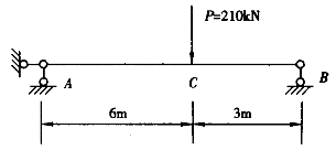 2.已知简支梁作用一集中荷载P,如图所示,则梁中A、B点受力为( )kN。