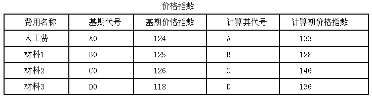 3.某承包商承包某外资工程项目的施工,与业主签订的施工合同要求:工程合同价2000万元,工程价款采用调值公式动态结算;该工程的人工费可调,占工程价款的35%,材料费有三种可调:材料1占20%,材料2占15%,材料3占15%。价格指数见下表。![]() 用调值公式法进行结算,该工程调之值后的实际结算价为( )万元。 |