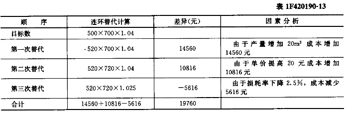 | 正确答案: (1)施工成本分析的方法有比较法、因素分析法、差额计算法和比率法。 (2)该工程施工项目成本差异为:383760-364000=19760元 (3)商品混凝土成本变动因素分析表(表1F420190-13)。 ![]() |