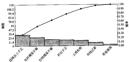 | 1.背景 对某架空线路工程质量问题的调查,发现导致杆歪的原因有:电杆埋深不够24处,拉线出土不正32处,拉线埋深不够18处,土质松软15处,吊线过紧9处,杆位不正17处,其他原因3处。 问题 (1)编制杆歪质量问题调查表,画出杆歪质量问题的排列图,分析造成杆歪问题的主要原因是什么? (2)用因果分析法分析拉线埋深不够的原因。 (3)如何控制立杆的质量? (4)如何通过控制操作者的工作质量保证立杆的质量? |