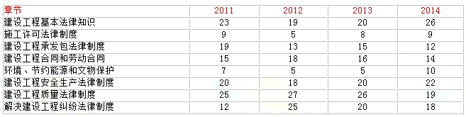 近年法规考试分值分布情况