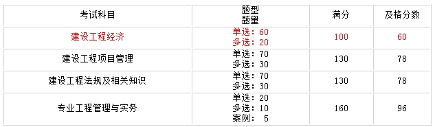 一级建造师考试共四科: