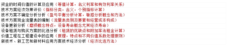 第一章重点难点是方案经济效果评价,另外资金时间价值和方案不确定分析分析也是难点。