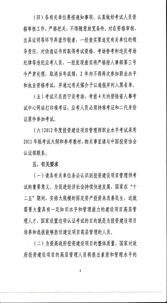 青海:2012年投资项目管理师职业水平考试报名工作的通知
