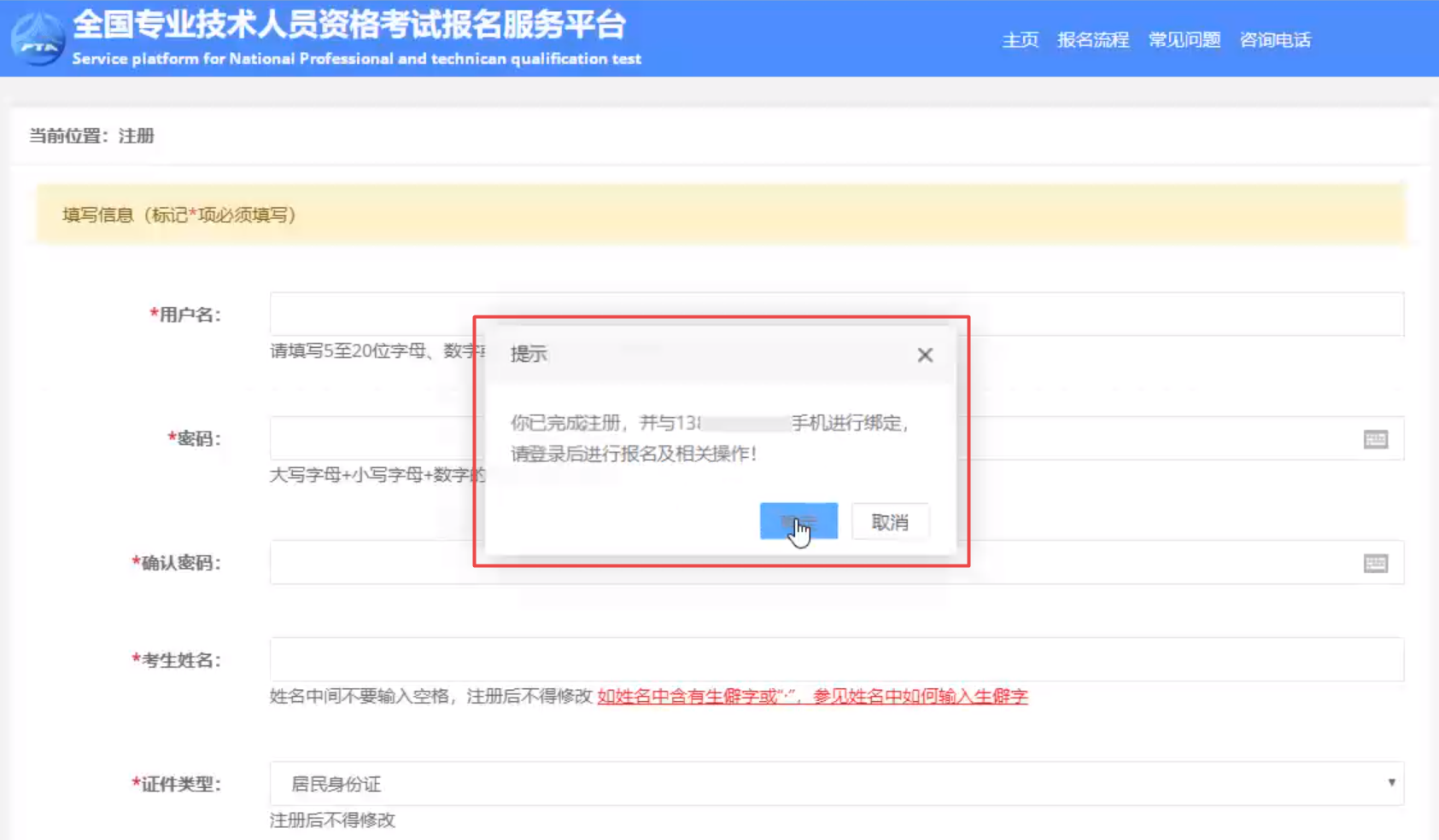 阅读专业技术人员资格考试网上报名协议→阅读注册须知→用户注册
