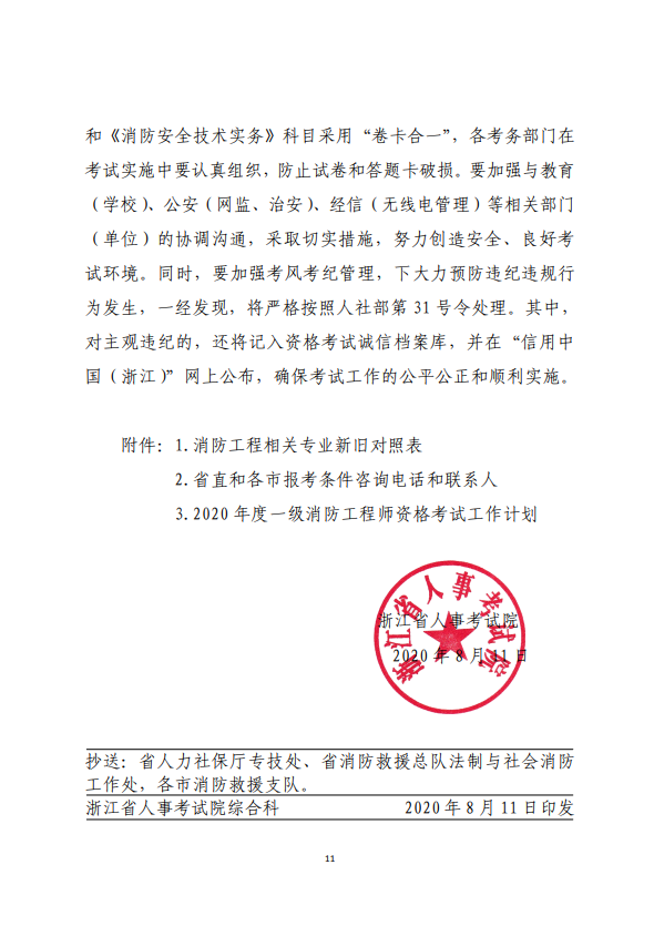 关于做好2020年度一级注册消防工程师资格考试有关工作的通知