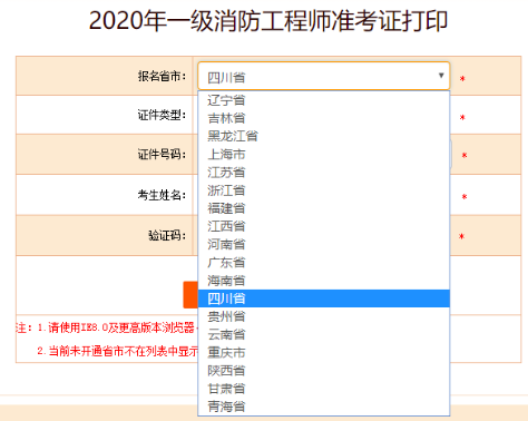 三、选择“四川省”,输入证件号码、考生姓名和验证码进入打印.