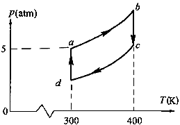 2.一定量的理想气体,在p-T图上经历一个如图所示的循环过程(a→b→c→d→a),其中a→b、c→d两个过程是绝热过程,则该循环的效率η等于:![]() |