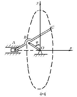 2.图4所示机构中,曲柄OB朝逆时针向转动,并带动杆AC,该杆上点A和滑块在水平滑槽内运动。已知:AB=OB=20cm;BC=40cm,曲柄OB与铅直线的夹角φ=4t(t以秒计),则当φ=π/2时,AC杆上C点的速度大小v 为( )。![]() |