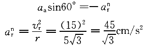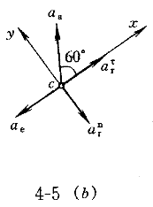 正确答案:B 解题思路:解:由于O A=O B,O O =AB,故半圆形平板ACB作平动。取CD杆上的C点为动点,动系与半圆形平板固连(平动系)。于是v =v![]() a =a![]() A点的速度和加速度大小分别为 v =OA·ω=15· =15 cm/sa =OA·ω =15·( ) =15 cm/s![]() 它们的方向如图5所示。 根据已知条件和速度合成定理,作出动点的速度平行四边形如图5(a)所示,从而可得: v =v etan30°=v Atan30°= =15cm/s标出动点C的各项加速度如图4-5(b)所示,并选图示坐标系czy。 ![]() 根据牵连运动为平动时点的加速度合成定理,此时有: ![]() 将此矢量式向图示y轴投影,得: ![]() 于是 ![]() a 为负值,说明a 在图上所设指向与实际情况相反,即a 的方向铅直向下。所得a 即为此时CD杆的加速度a 。故应选择B。 |