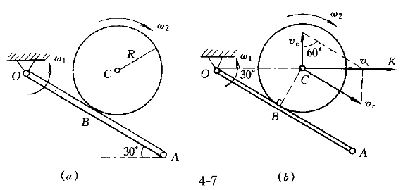 4.图7所示OA杆绕O轴朝逆时针向转动,均质圆盘沿OA杆滚动而无滑动。已知圆盘的质量m=20kg,半径R=10cm。在图示位置时,OA杆的倾角为30°,其转动的角速度ω =1rad/s,圆盘相对OA杆转动的角速度ω =4rad/s,OB= cm,则此时圆盘的动量大小为( )。![]() |