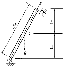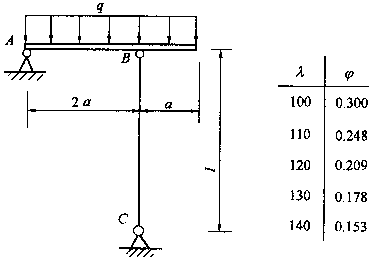 4.已知压杆BC直径d=10cm,l=3m,材料为木材,[σ]=10MPa,折减系数φ的值如图表所示,a=1m,则均布荷载q的允许值最大为:![]() |