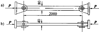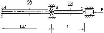 2.如图所示结构中,AB段为圆截面杆,直径d=80mm,A端固定,B端为球铰连接,BC段为正方形截面杆,边长a=70mm,C端亦为球铰连接,两杆材料相同,弹性模量E=206GPa,比例极限σ =20MPa,l=3m,稳定安全系数n =2.5,则结构的许可荷载[P]为:![]() |