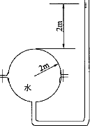 3.如图所示半径为2m的受水压的球体,由两个半球用螺栓连接而成,测压管液面与球顶部高差为2m,则螺栓所受到的总拉力为:![]() |